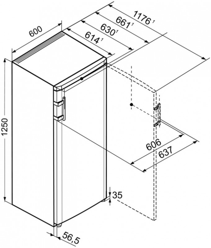 Наружные размеры (В/Ш/Г) 125,0 / 60,0 / 63,1 см