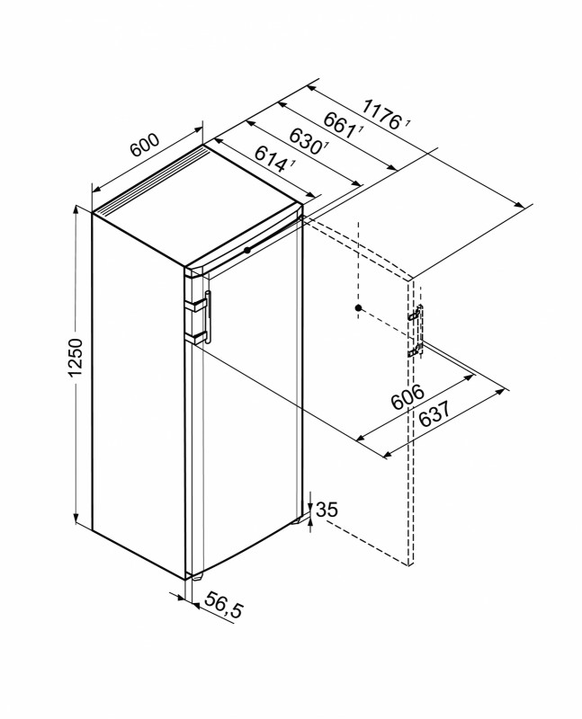 Наружные размеры (В/Ш/Г) 125,0 / 60,0 / 63,1 см