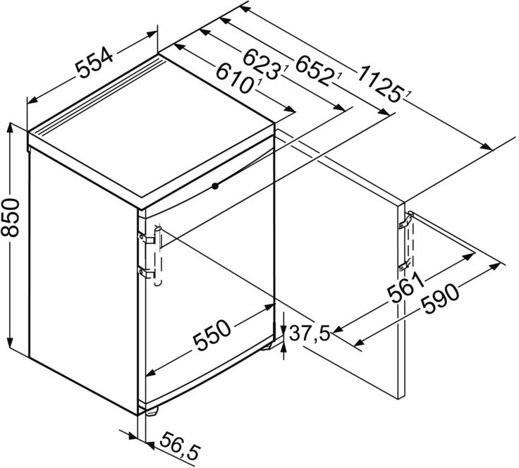Наружные размеры (В/Ш/Г) 85,0 / 55,4 / 62,3 см