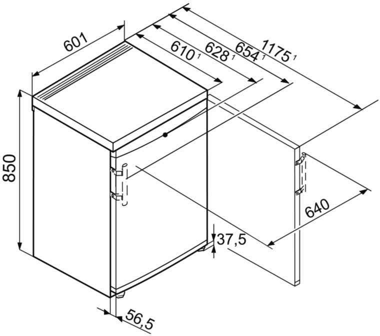 Наружные размеры (В/Ш/Г) 85,0 / 60,1 / 62,8 см