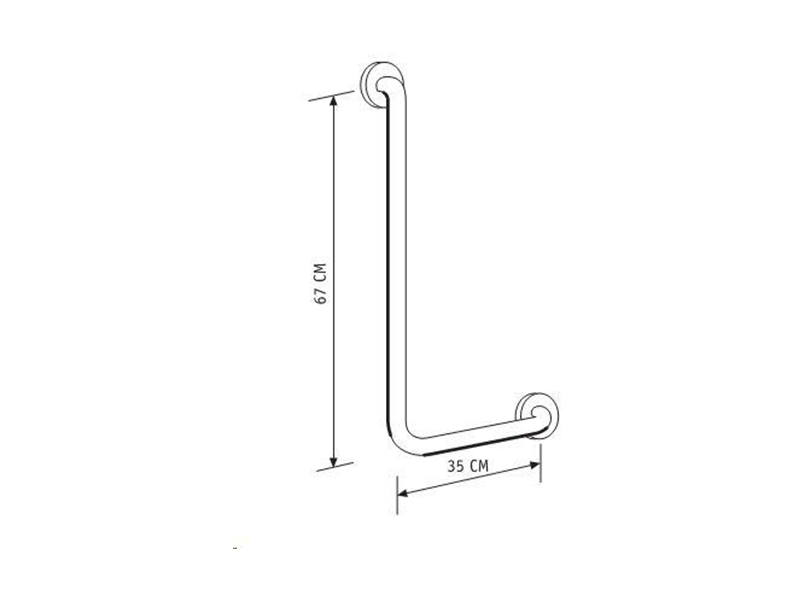 1) Опорный поручень с прямым углом справа Hatria Autonomy 67х35 см белый