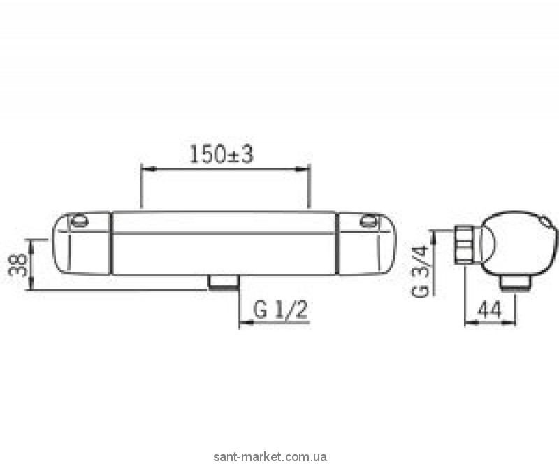 Смеситель для душа настенный двухвентильный с термостатом Oras коллекция Optima хром 7160