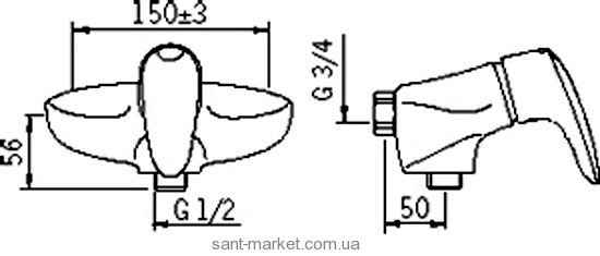Смеситель для душа настенный однорычажный Oras коллекция Vega хром 1875U