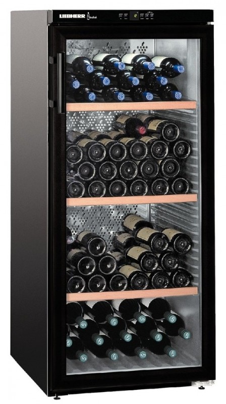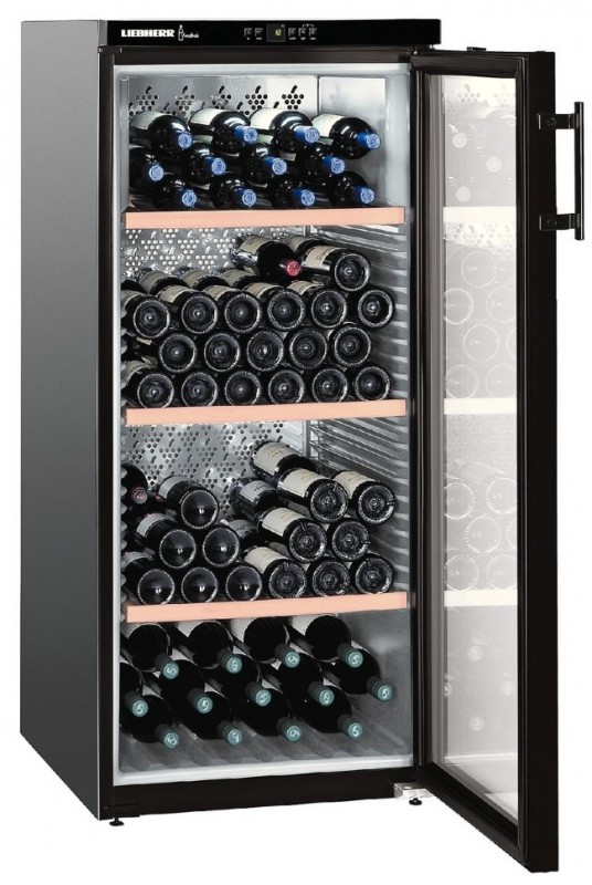 1) Отдельностоящий винный шкаф Liebherr WKb 3212 Vinothek тонированный стеклопакет/сталь черный