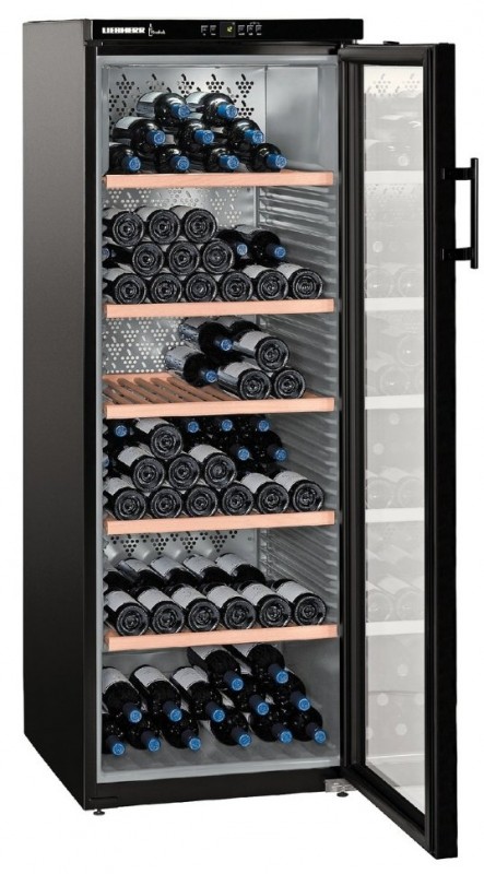 1) Отдельностоящий винный шкаф Liebherr WKb 4212 Vinothek тонированный стеклопакет/сталь черный