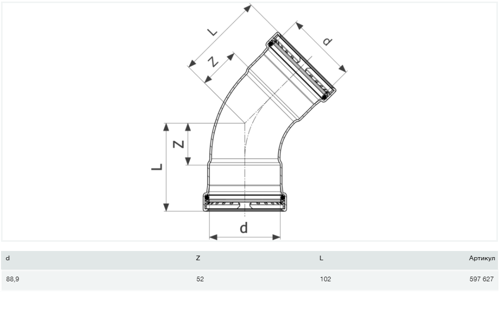 1) Отвод 45° Viega Prestabo XL 1126XL 88.9 нелегированная сталь
