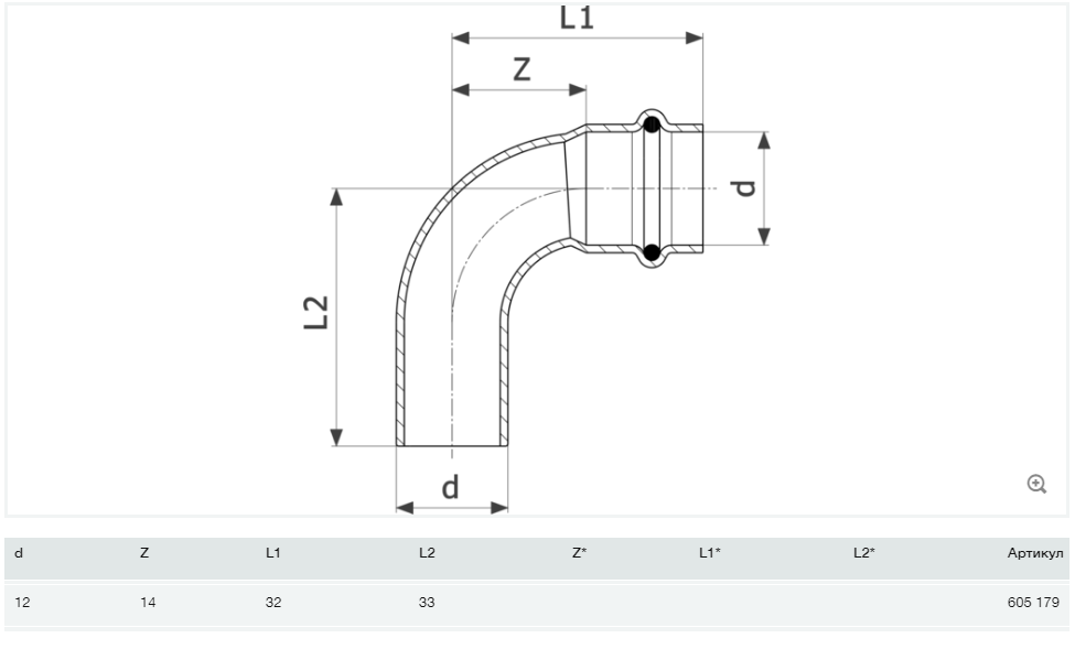 1) Отвод 90° Viega Prestabo 1116.1 12 нелегированная сталь
