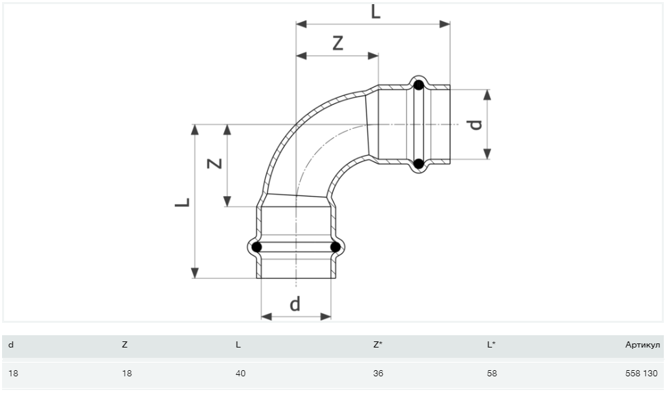 1) Отвод 90° Viega Prestabo 1116 18 нелегированная сталь