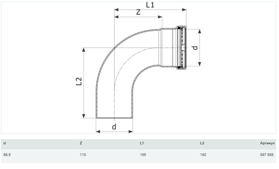 1) Отвод 90° Viega Prestabo XL 1116.1XL 88.9 нелегированная сталь