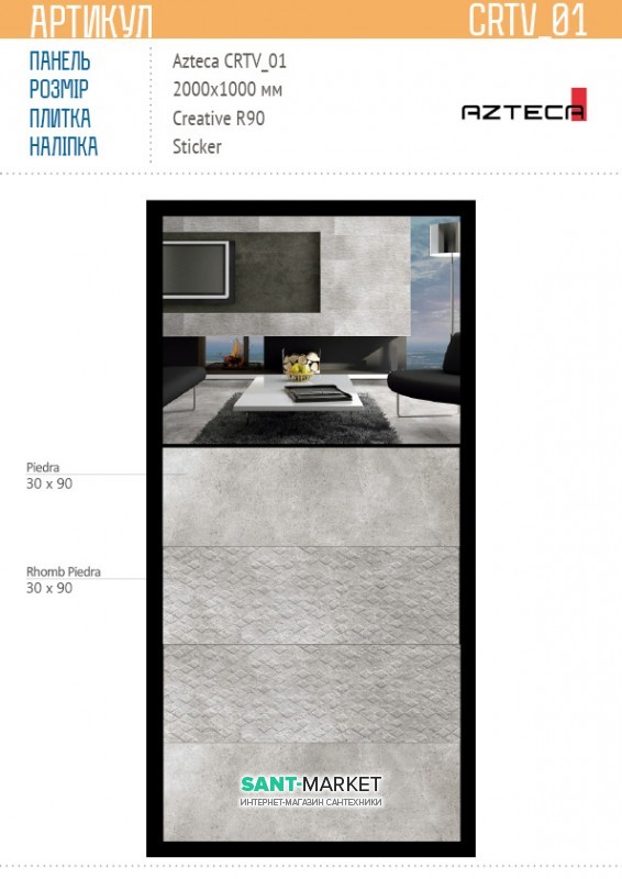 Панель Azteca Creative R90 "piedra" Crtv 01 30х90