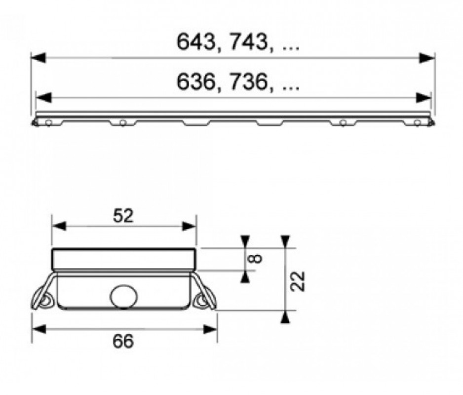 • Длина канала L: 900 мм