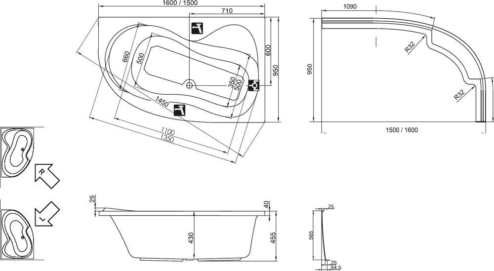 • Данная панель предназначена для левой ванны Ravak Rosa 95 1600x950 L (C211000000)