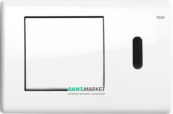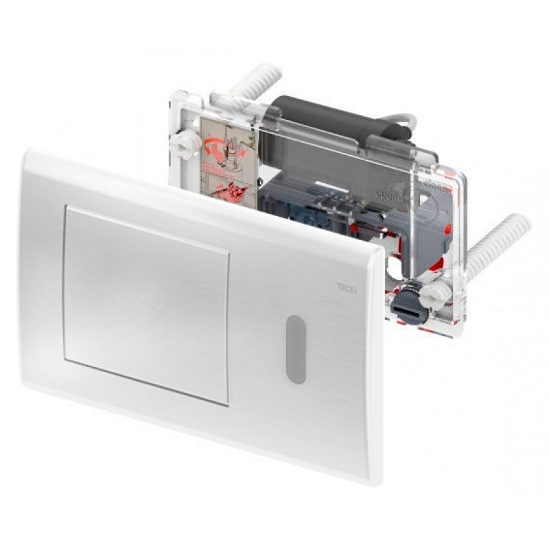 1) Панель смыва для унитаза TECE TECEplanus 6 V-Batterie с инфракрасным датчиком нержавеющая сталь белый глянец