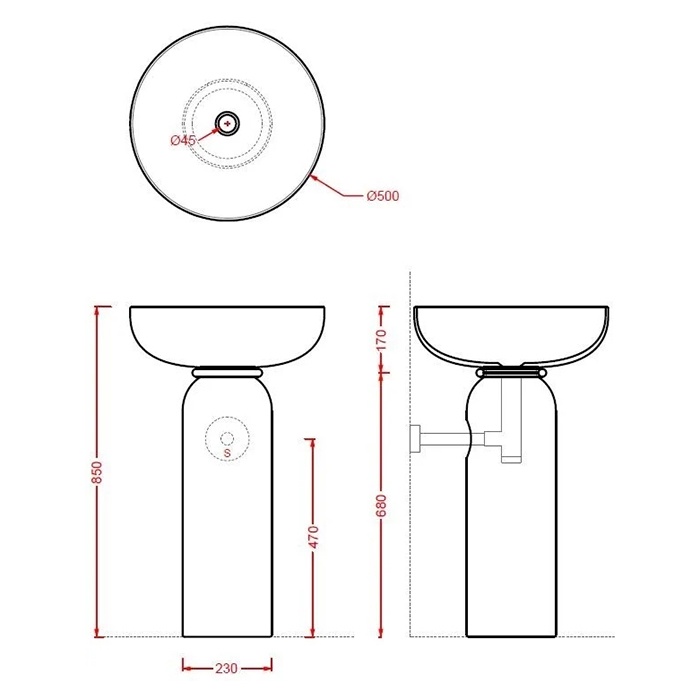 - Дополнительно приобретается кольцо для соединения раковины с пьедесталом арт. ACA073 в разных цветовых отделках