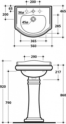 - Пьедестал для подвесных раковин Retro: 104504, 104604, 104704