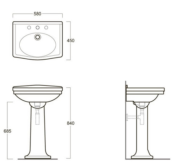 1) Пьедестал для раковины Simas Londra фаянс белый