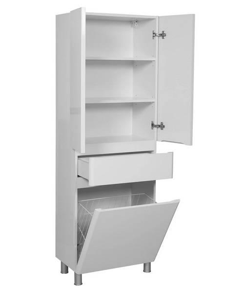 Пенал для ванной Аквародос Акцент напольный 60х35,5х175 см с корзиной ДСП/МДФ белый АР000000834