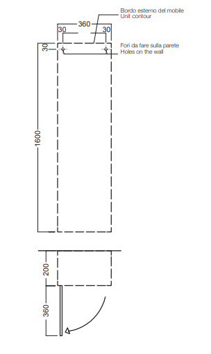 1) Пенал для ванной Hatria подвесной SX 36х160 см однодверный ДСП серо-коричневый "cement effect"
