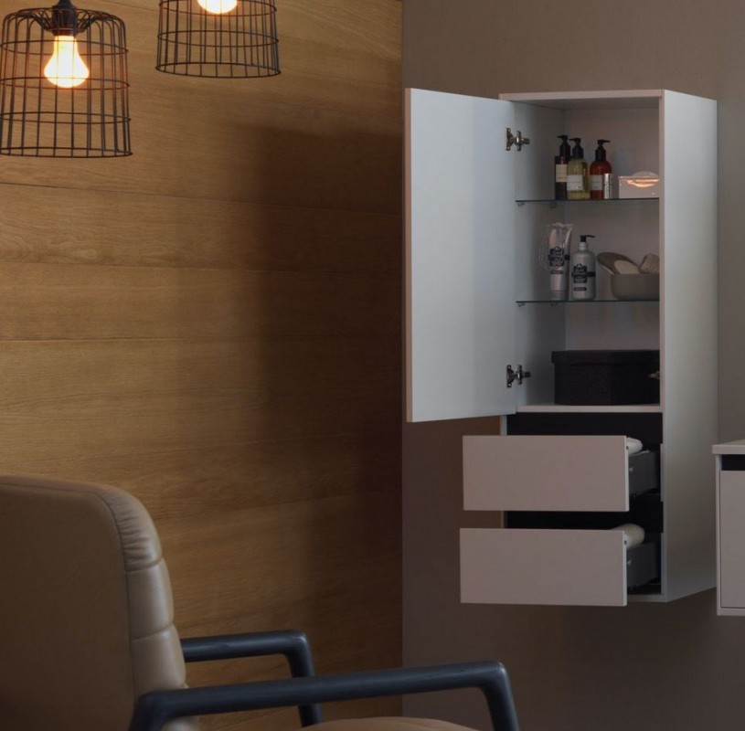 Открывание двери нажатием. Функциональность служит вашему удобству. Дверь открывается нажатием, без дополнительных ручек, что придает ванной комнате современный и элегантный вид. Специальные системы демпфирования позволяют медленно и в то же время тихо закрывать двери шкафа в ванной, обеспечивая функциональный комфорт в вашей ванной комнате.