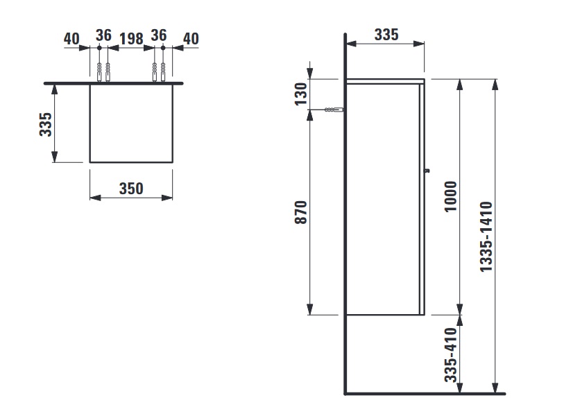 Пенал для ванной Laufen Case средний 35x33,5x100 см петли слева МДФ белый