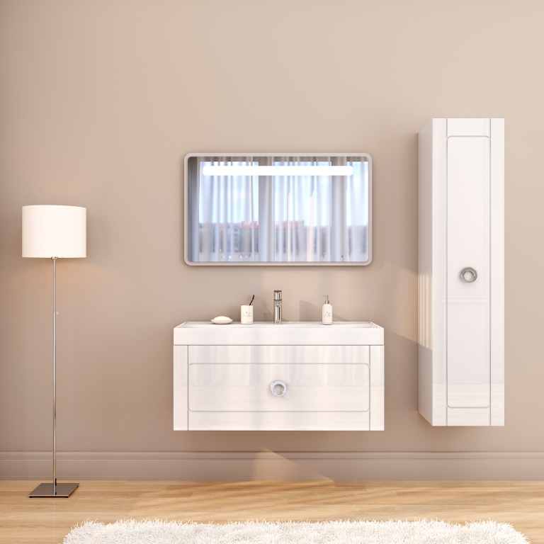 1) Пенал для ванной Marsan Charlottae 35х150 см МДФ белый