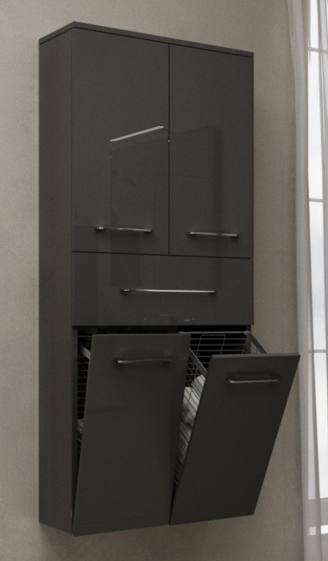 Пенал для ванной Marsan Regine 1600х600х350 см МДФ графит глянец с корзинами REGINEК160Х60графит