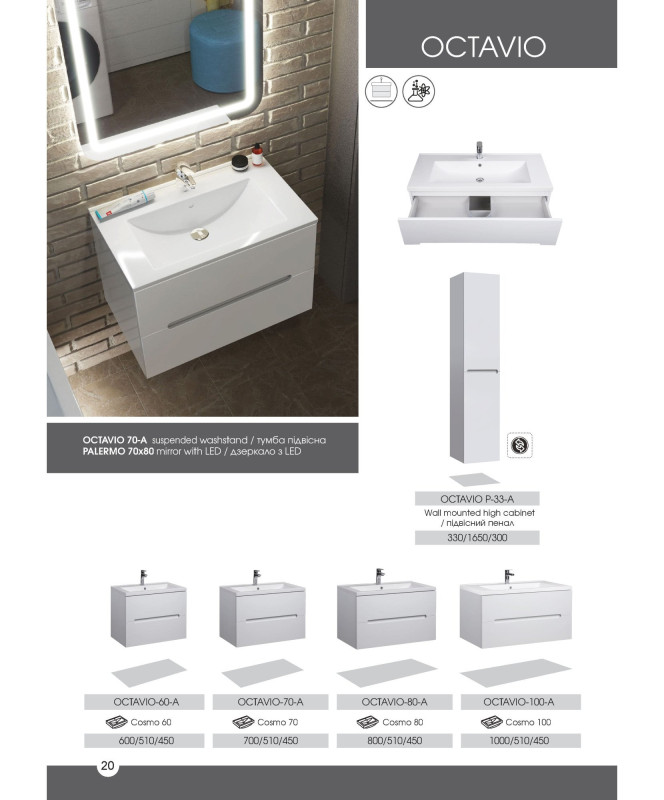 Пенал для ванной Мойдодыр Octavio П-33-А 33х30х165 см ДСП/МДФ белый глянец 00-0006759