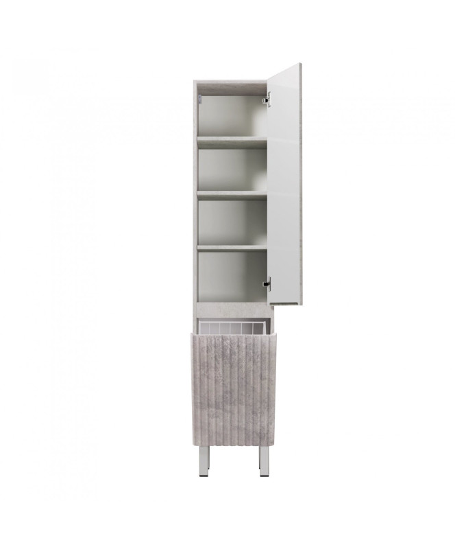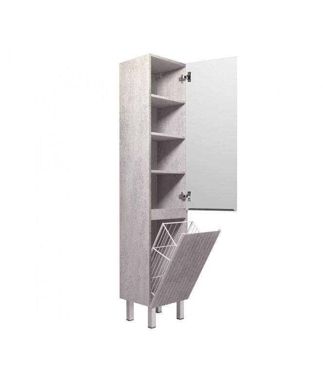 Пенал оснащен правосторонним открытием с возможностью самостоятельного перенавешивания и откидной бельевой корзиной. Два отдела и три полочки позволяют эффективно организовать хранение всех необходимых вещей в ванной.