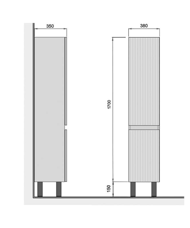 Благодаря универсальному монтажу, пенал может быть установлен как на пол, так и навесной, что позволяет адаптировать его под любой интерьер. Его ширина 38 см, высота 170 см (+ ножки 185 см) и глубина 35 см обеспечивают оптимальное использование пространства.