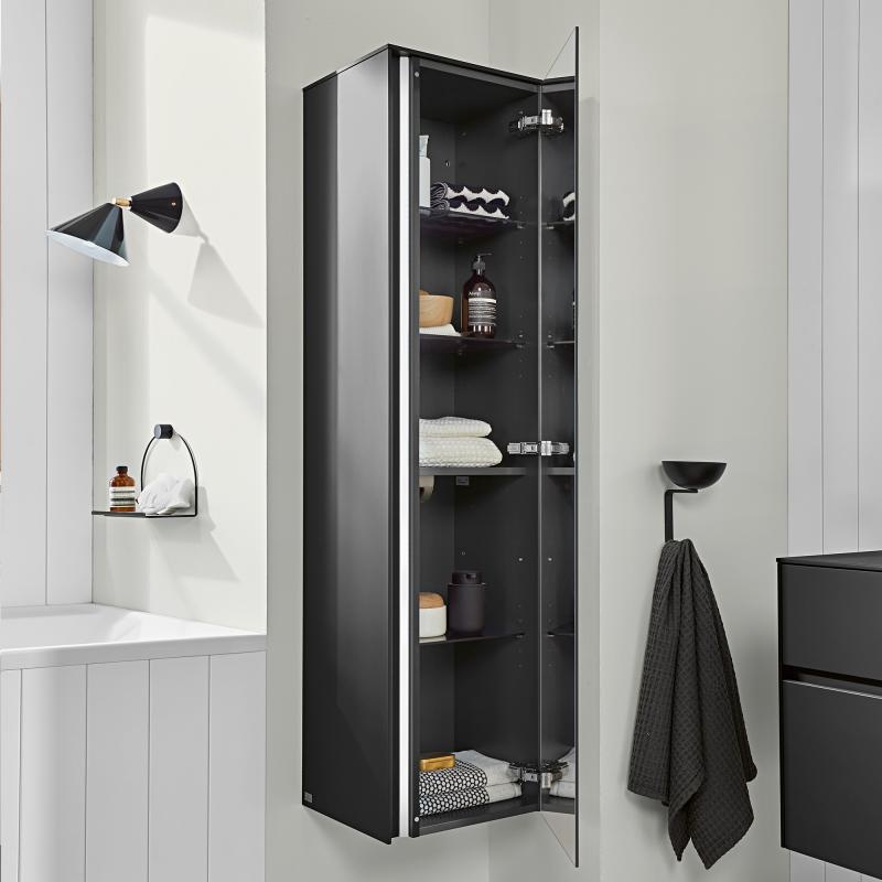 Пенал для ванной Villeroy & Boch Collaro 40,4x153,8х34,9 см петли справа с подсветкой МДФ черный матовый лак