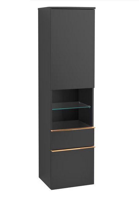 Пенал Villeroy & Boch Venticello 40,4х37,2х154,6 см петли справа МДФ черный матовый лак/ручка медь