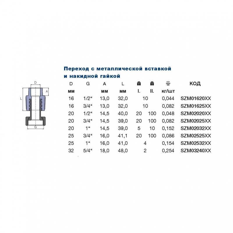 Переход Ekoplastik с металлическими вставками и накидной гайкой 20х½" SZM02020XX