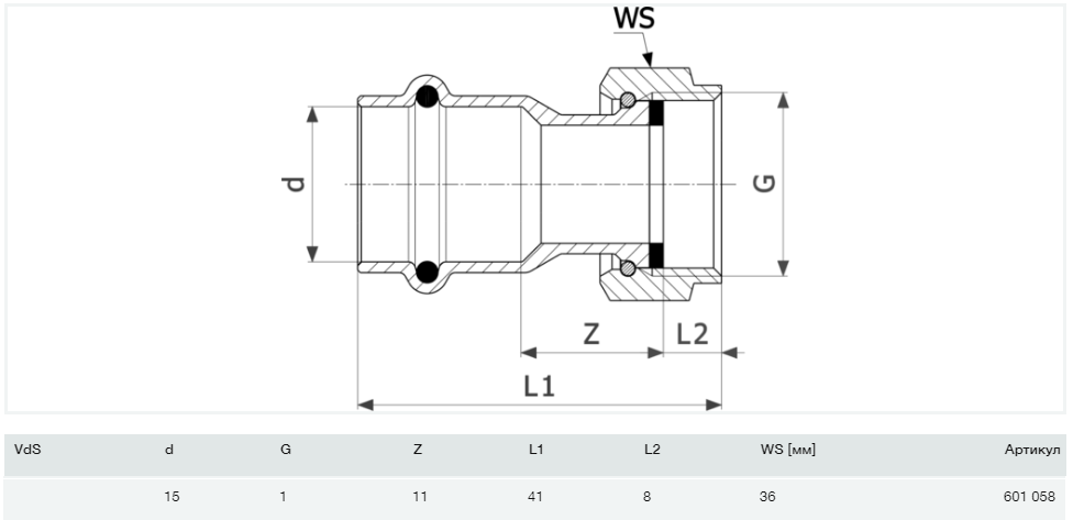 Переход на резьбовые соединения Viega Prestabo 1163 15хG1 нелегированная сталь