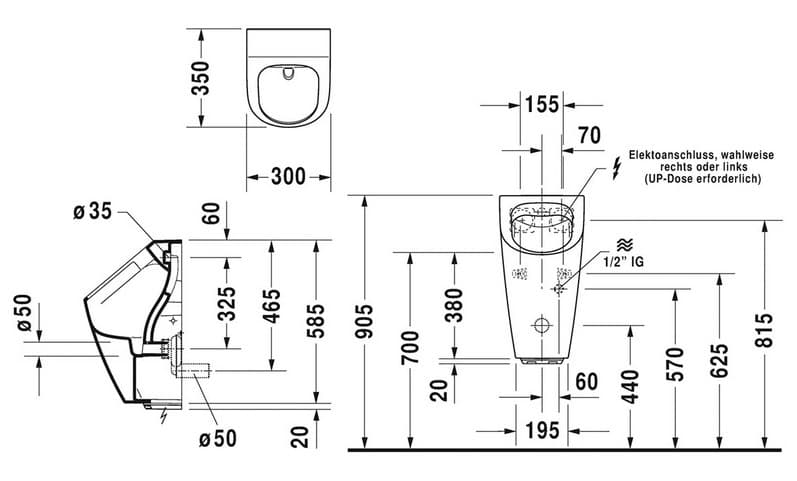 1) Писсуар настенный Duravit ME by Starck электронный 30х35 см керамика белый