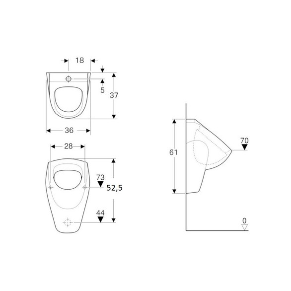 Писсуар настенный Geberit Selnova 36х37 см фарфор белый