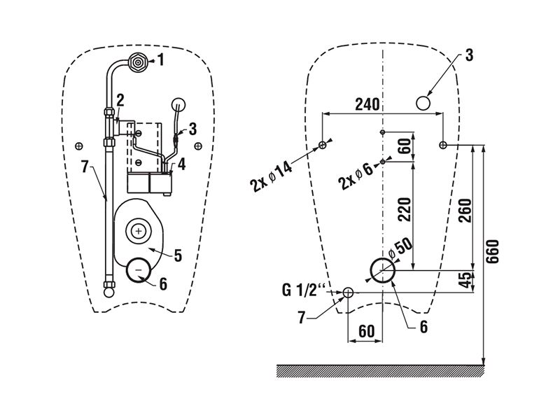 - Сифонный писсуар с системой промывки, управляемой радарным датчиком, активируемой после каждого использования