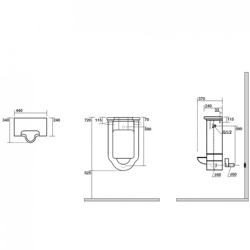 Писсуар подвесной Kerasan Waldorf с сифоном и крепежом белый 413001