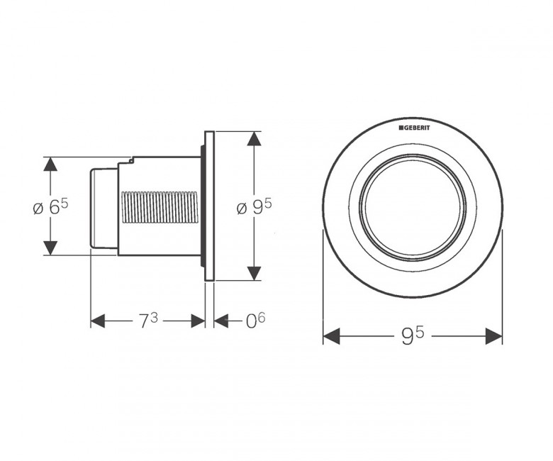 - Пневмокнопка управления смывом унитаза Geberit тип 01 для одинарного смыва, для скрытого монтажа