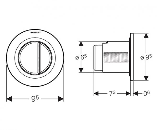 - Может комбинироваться со смывными клавишами Geberit для одинарного смыва и смыва «смыв/стоп», либо защитной крышкой Geberit