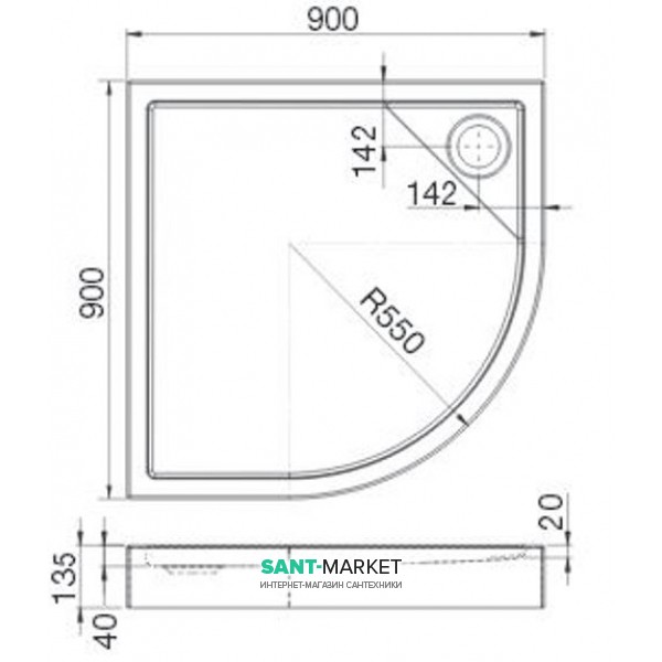 Душевой поддон акриловый четверть круга Roca Malaga Rondo 90х90х13.5 белый 276260000