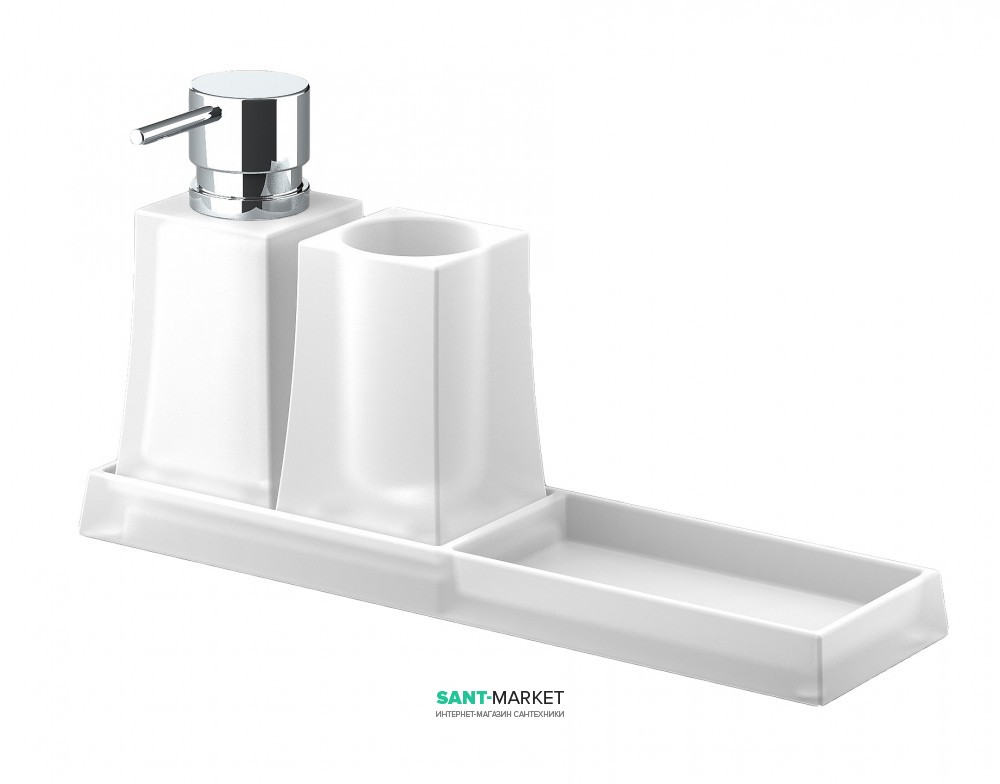 Подставка с дозатором для мыла и стаканом для зубных щеток Sonia S7 Mid Сentury Design матовое стекло/латунь хром 131822
