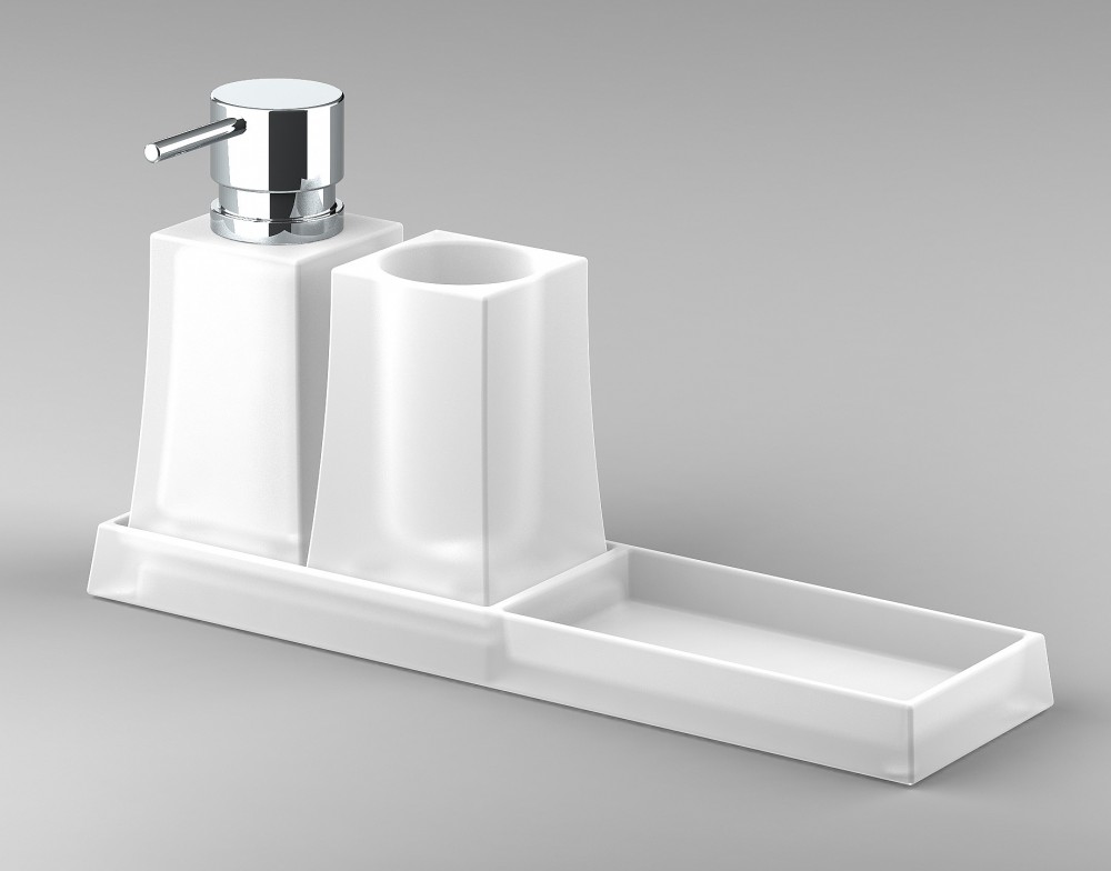 Подставка с дозатором для мыла и стаканом для зубных щеток Sonia S7 Mid Сentury Design матовое стекло/латунь хром
