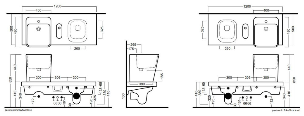 Подвесная система со встроенным унитазом справа и местом для раковины слева Hatria G-Full 120х50 санфарфор белый 00YXJX01