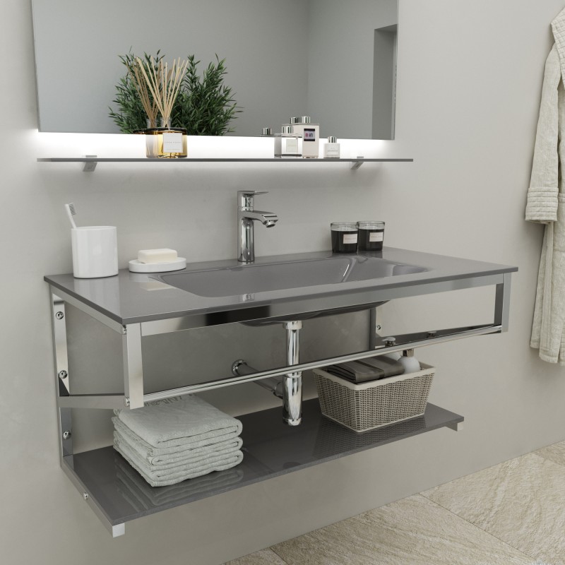 1) Полка для ванной Marsan 60х35 см стекло бисмарк