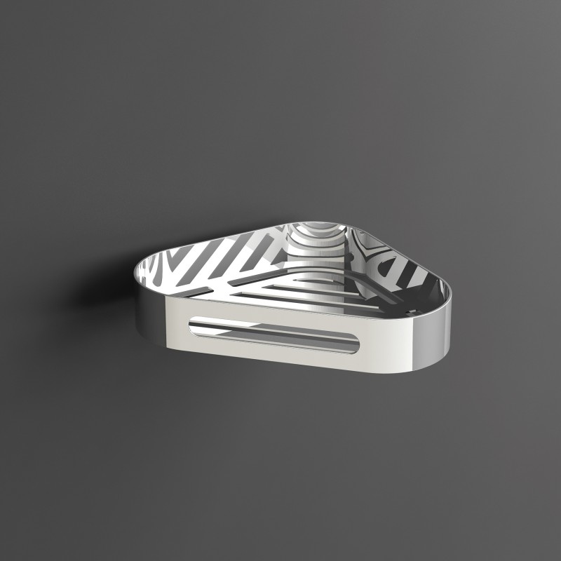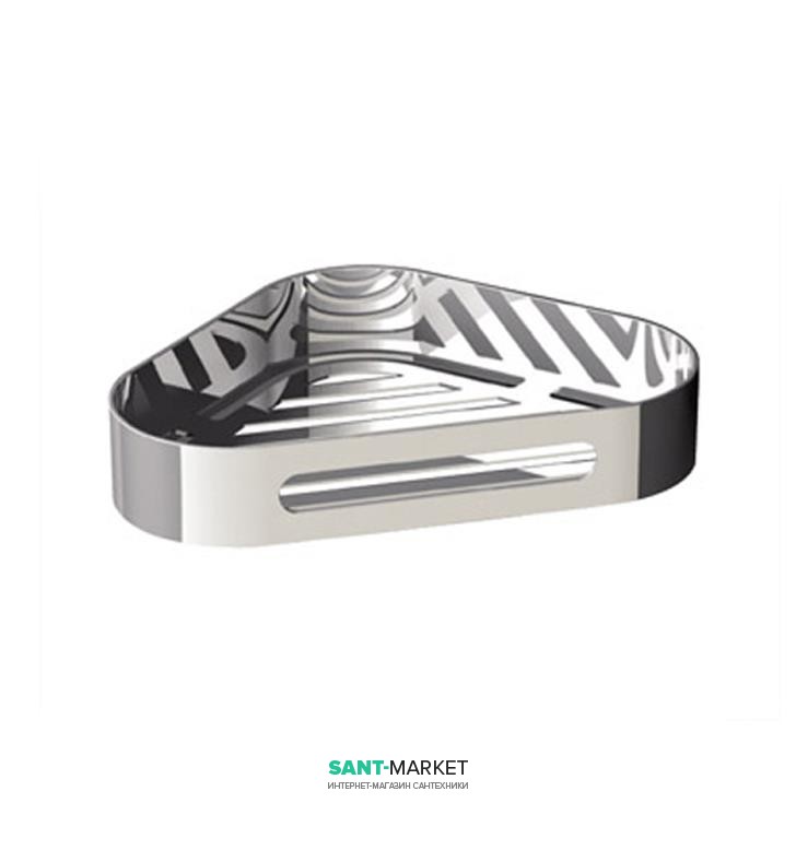 Она имеет форму правильного треугольника с габаритными размерами 225х40х160 мм, поэтому легко поместится в любом уголке ванной комнаты. Полочка не имеет острых углов, так как они закруглены для удобства использования и безопасности. Также на полочке имеется бортик высотой 40 мм, благодаря которому хранить косметические средства будет максимально удобно. В конструкции есть специальные отверстия для лучшей циркуляции воздуха. Изготавливается из нержавеющей стали – этот материал на протяжении многих лет не теряет своих эксплуатационных характеристик. Крепление полочки боковое, поэтому она крепится непосредственно на стену, независимо от покрытия.