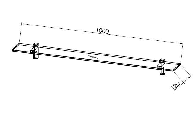 Стеклянные полки различной длины с хромированными кронштейнами шириной 12 см.