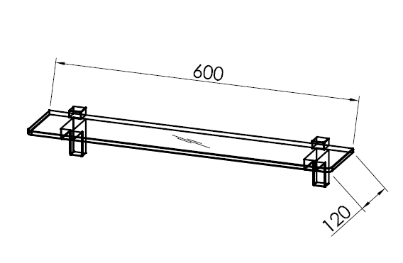 Стеклянные полки различной длины с хромированными кронштейнами шириной 12 см.