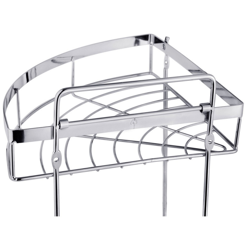 Угловая полка Kroner KRM Rizze - ACC329-3 изготовлена из прочного металла. Оборудована бортиками и фиксирующими держателями. Нижняя полка имеет треугольную петлю. Не размещать полку в местах прямого контакта с водой.