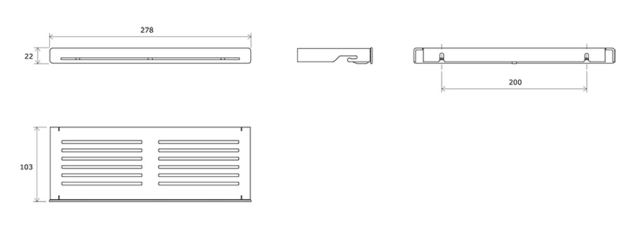 Прямая поверхность полки перфорированная, чтобы вода не оставалась на поверхности, но все же обеспечивала устойчивость расположенным предметам. По бокам полки есть практичные крючки для подвешивания мочалки или полотенца. В центре полки прикреплен нижний крючок, который выдержит даже более тяжелый предмет, например бритву. Соединив две или более полки, вы добьетесь эффективного комплекта с дополнительной зоной хранения. Мы рекомендуем сочетать с угловой полкой Slim C. Мы рекомендуем использовать RAVAK Cleaner Chrome для внешнего очищения. Крепление на два дюбеля. Шаг винтов - 200 мм.
