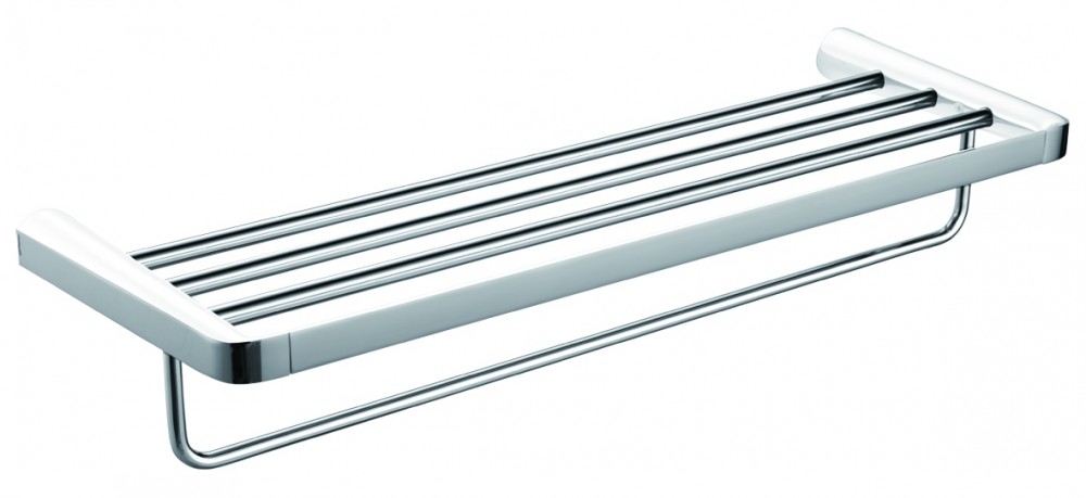 1) Полочка для ванной с полотенцедержателем Devit Katarina латунь хром/белый